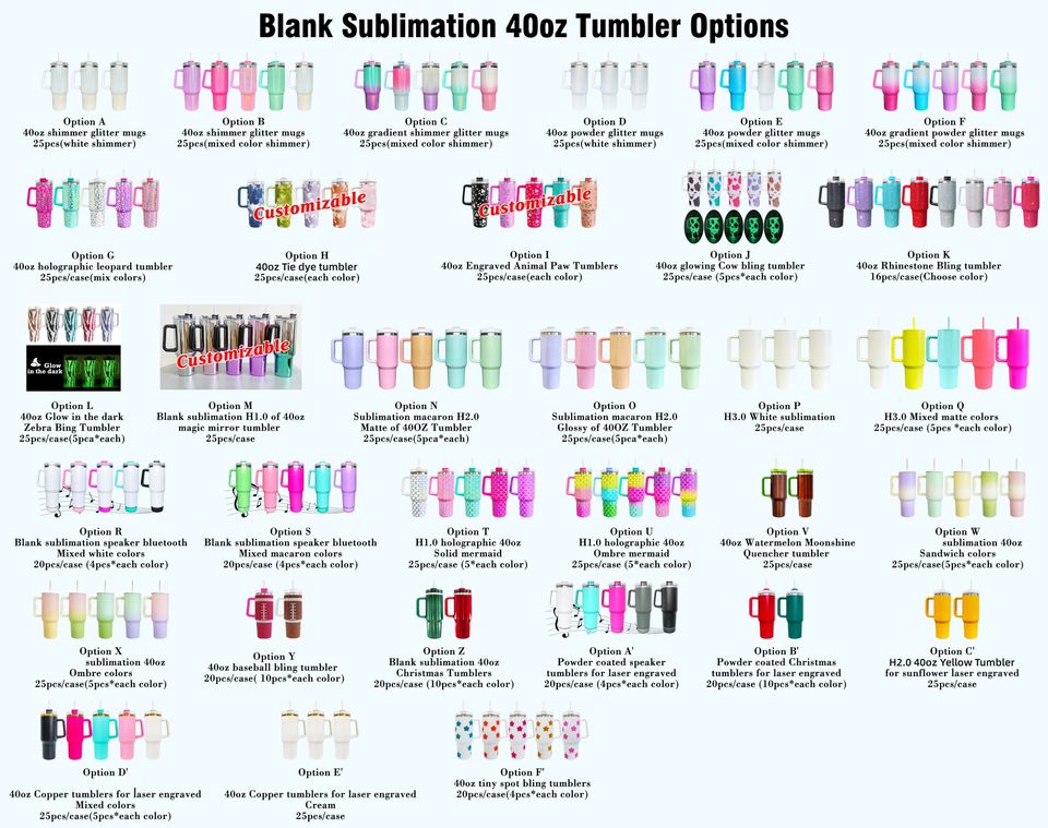Style::Sublimation poudre rugueuse pailleté 40oz gobelet