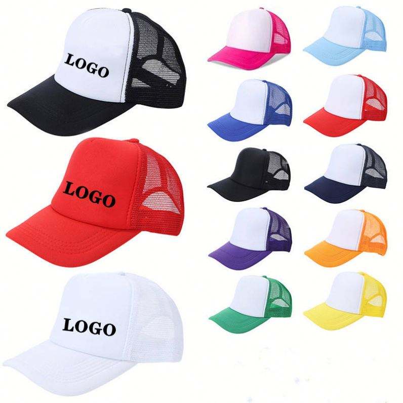 Casquette de camionneur à sublimation ; Casquette de baseball classique en maille avec logo personnalisé, casquette à 5 panneaux, casquettes de camionneur en mousse unie pour homme