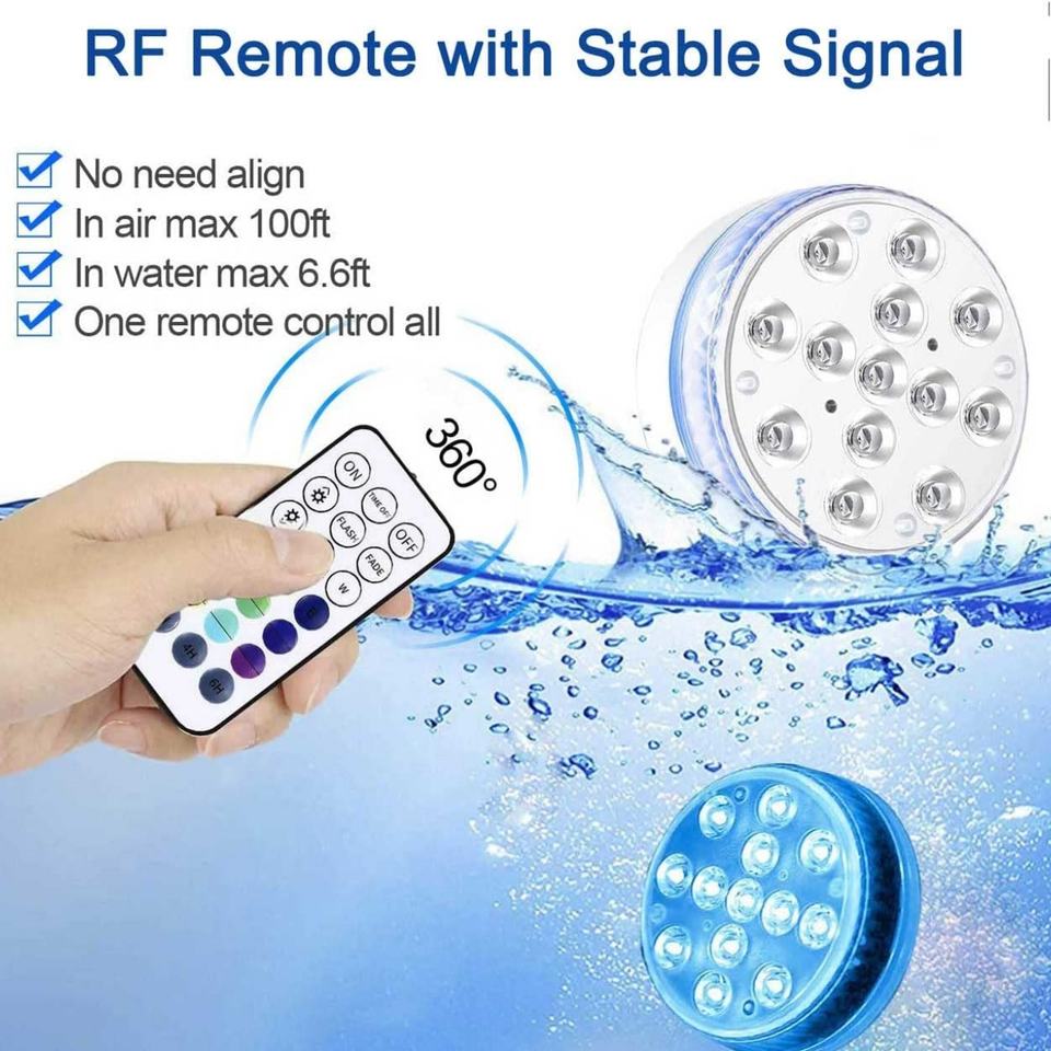 Lumière LED submersible étanche IP68 RGB pour piscine, avec télécommande RF, 13 perles, ventouse, fonctionne sur piles, lumière de douche