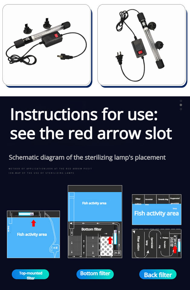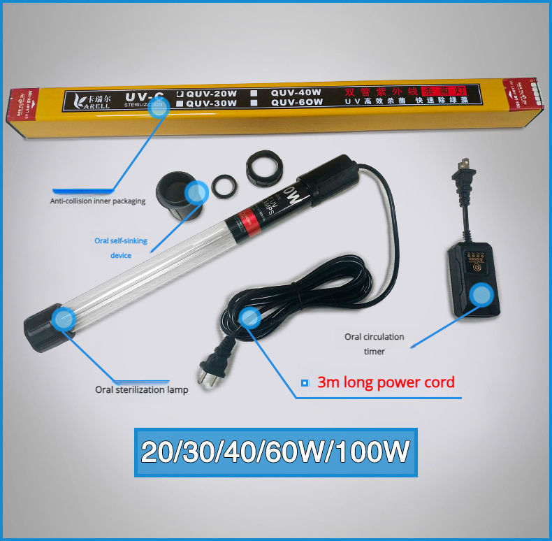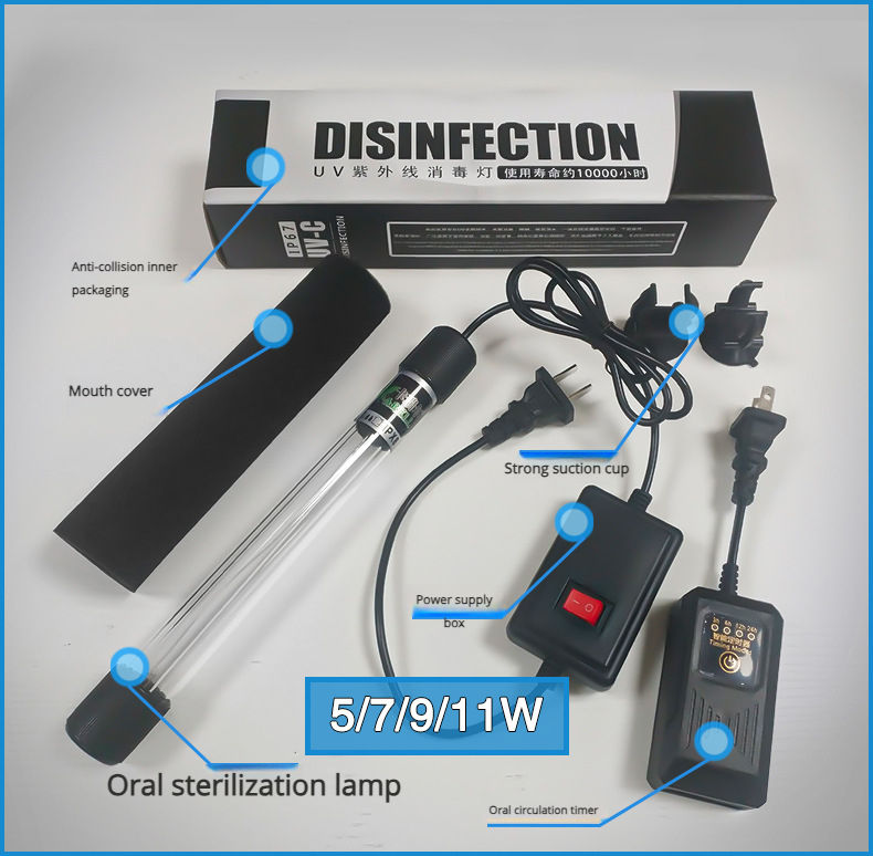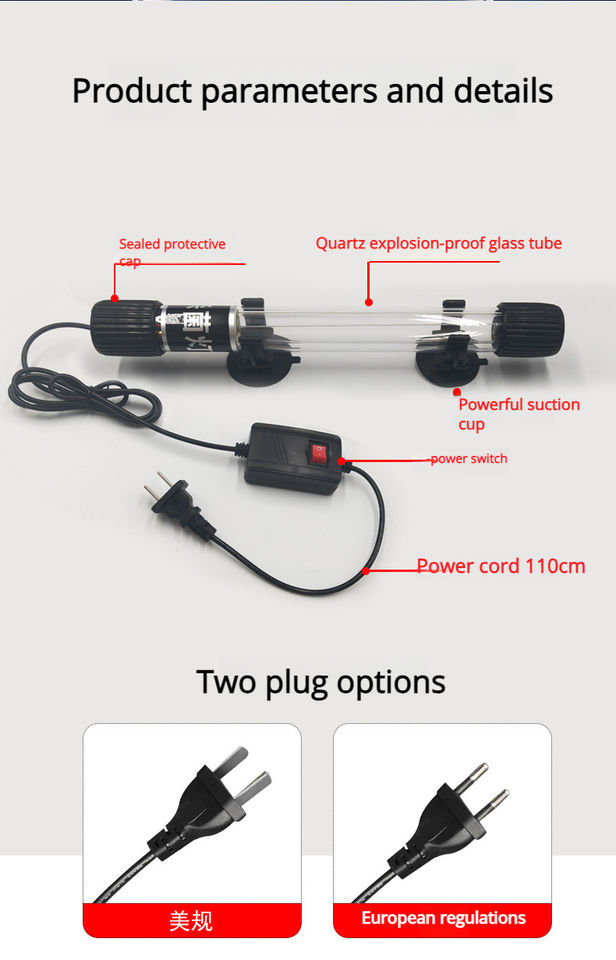 Lampe germicide UV submersible pour aquarium, design en verre de luxe avec élimination des algues, mousse, stérilisation écologique