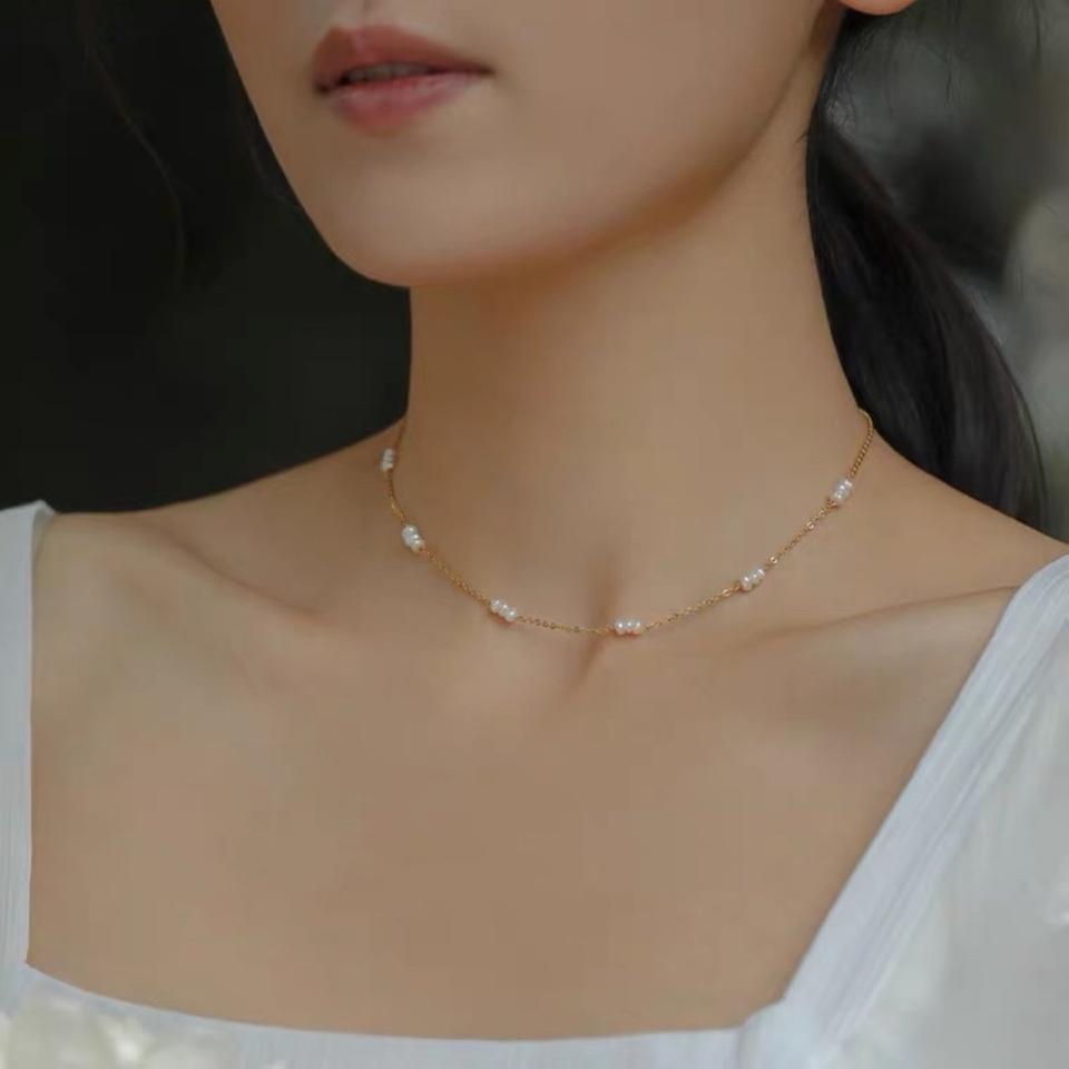 Collier en perles d'eau douce au design subtil pour femmes, cadeau mignon pour jeune fille avec chaîne de clavicule, pendentif simple et polyvalent