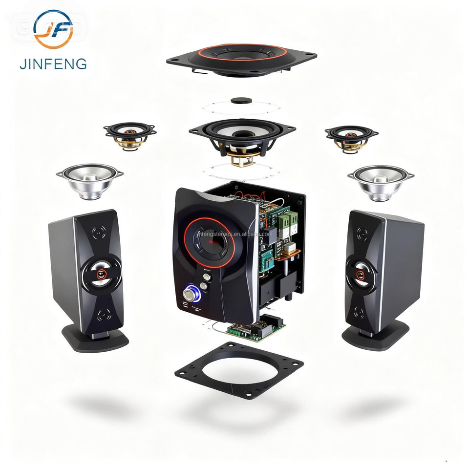 Haut-parleur 2.1 canaux pour ordinateur avec panneau de tweeter, coque en plastique pour subwoofer, accessoires 2.1, USB, SD, FM