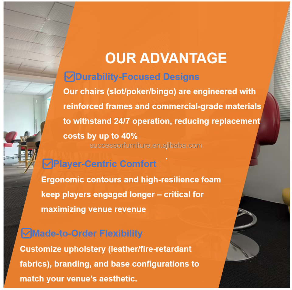 Siège d'arcade ergonomique Successor, finition en cuir, design de casino, fonctionnalités réglables et repose-pieds pour les joueurs hardcore