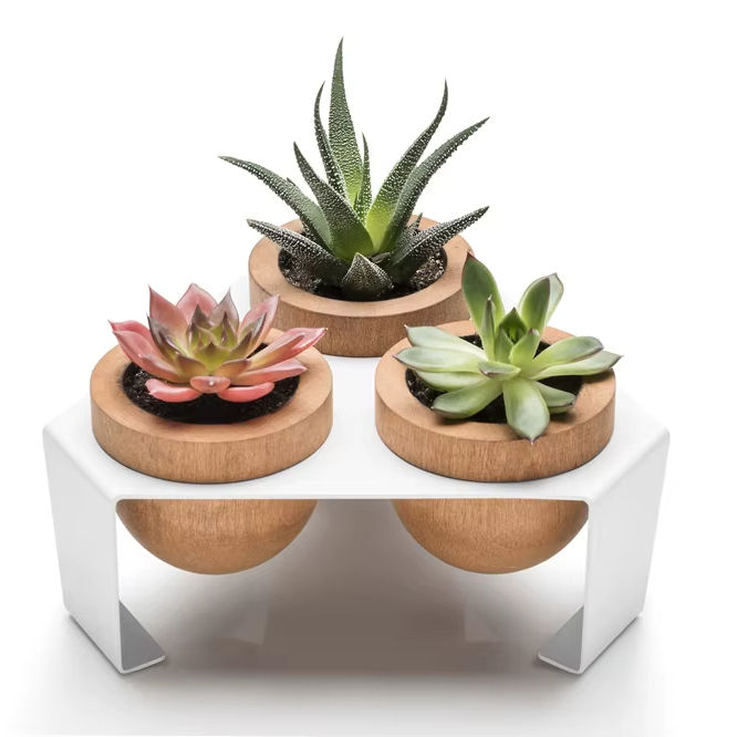 Pot de plante en bois pour plantes succulentes, support en métal blanc, décoration de bureau à domicile, porte-plante pour l'affichage des plantes sur le bureau, aspect moderne européen