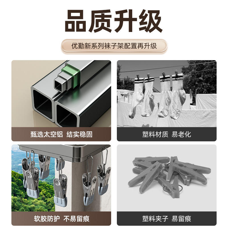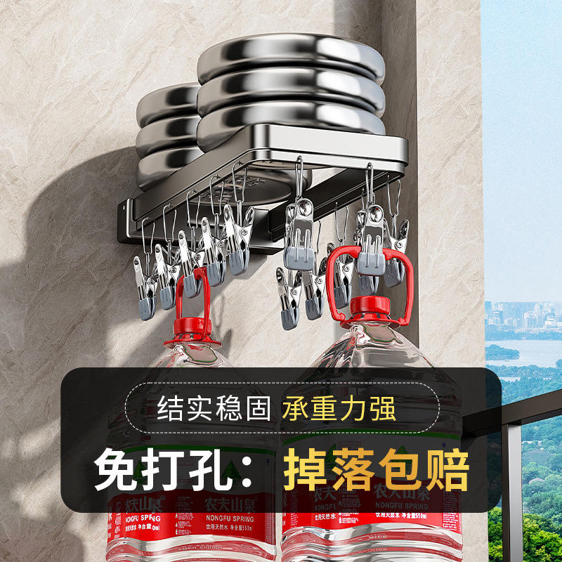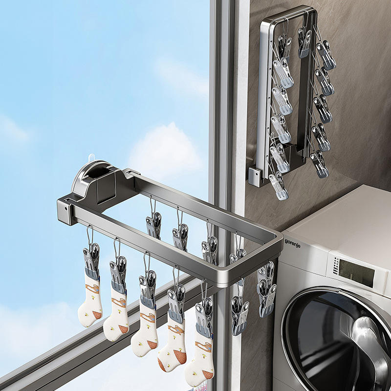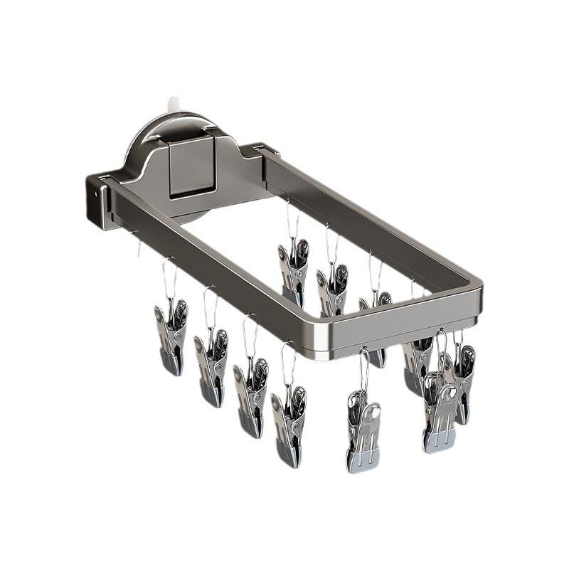 Séchoir à chaussettes pliable à ventouse, rectangulaire, mural, gain de place, pour balcon et salle de bain, avec pinces de rangement