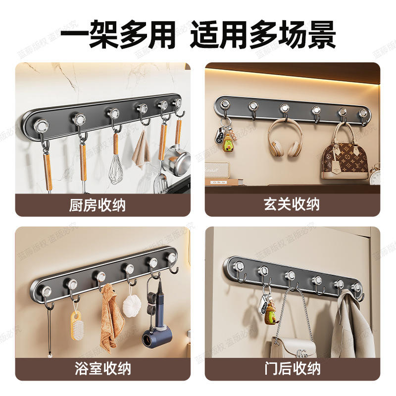Support mural à ventouse pour cuisine, finition chromée robuste, pour cuillères et spatules, support de rangement sans perçage