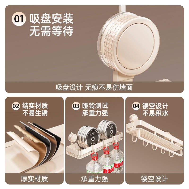 Suction Mounted Bathroom Shelf 60X70cm Rectangular Durable Storage Rack For Sink And Toilet Wall Mounted No Drilling Required