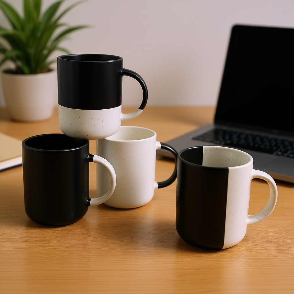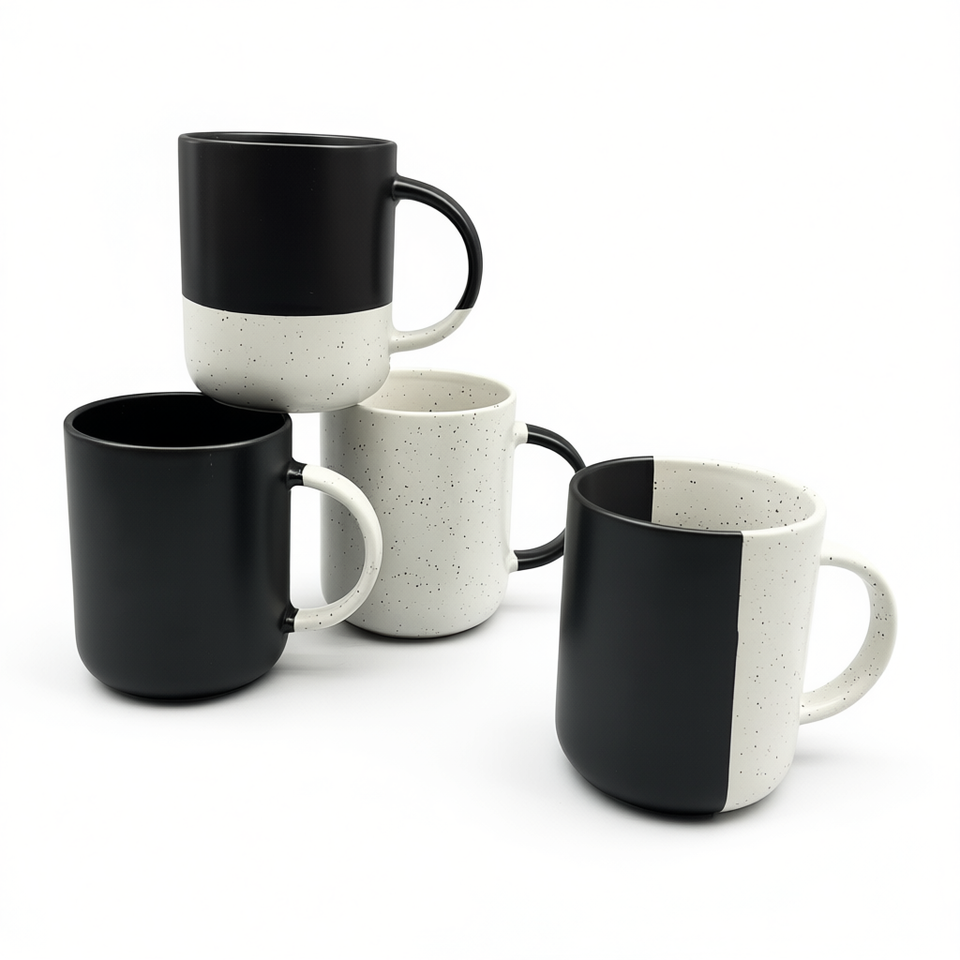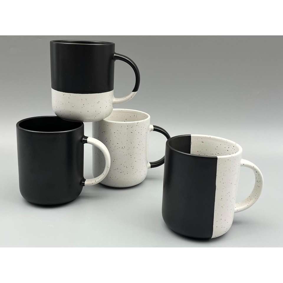 Tasses en céramique Suda Resource Sa De Cv, noires et blanches, motif moucheté, design par sublimation, pour la maison et le bureau