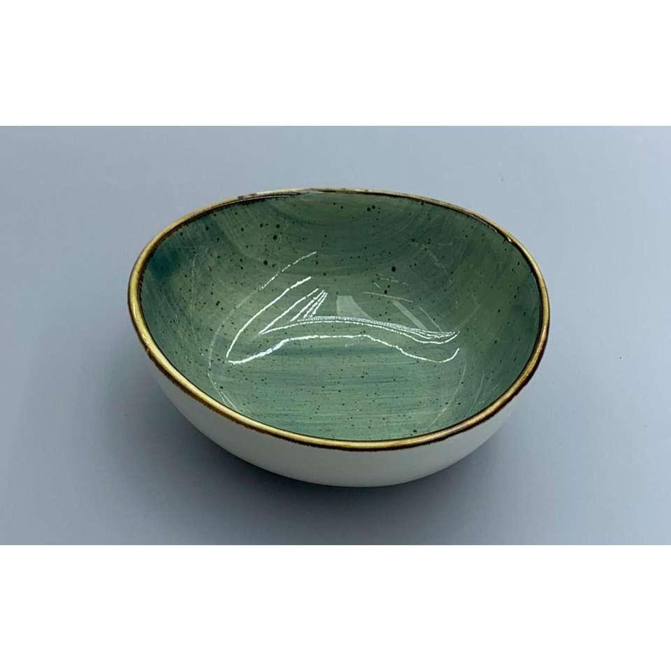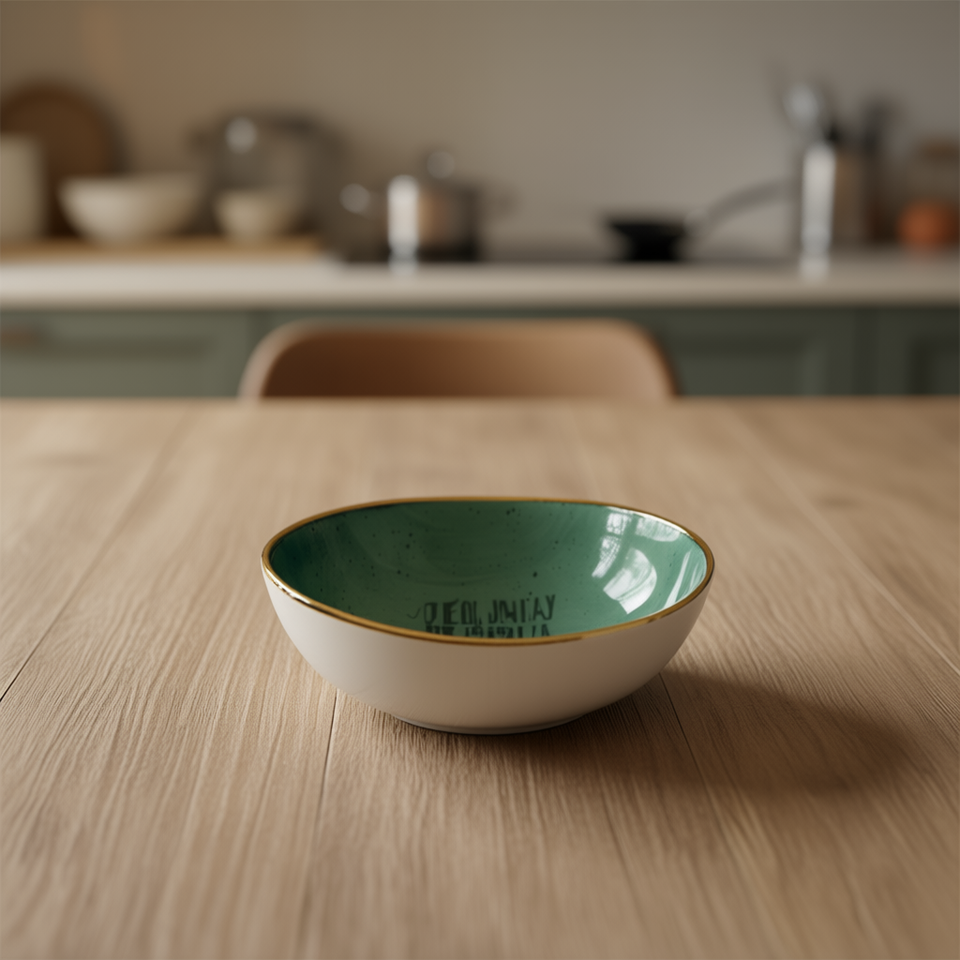 Bol en céramique fait main Suda Resource Sa De Cv, glaçure verte, bord doré, style Wabi Sabi, vaisselle décorative pour la salle à manger