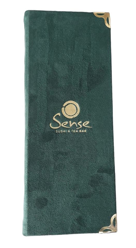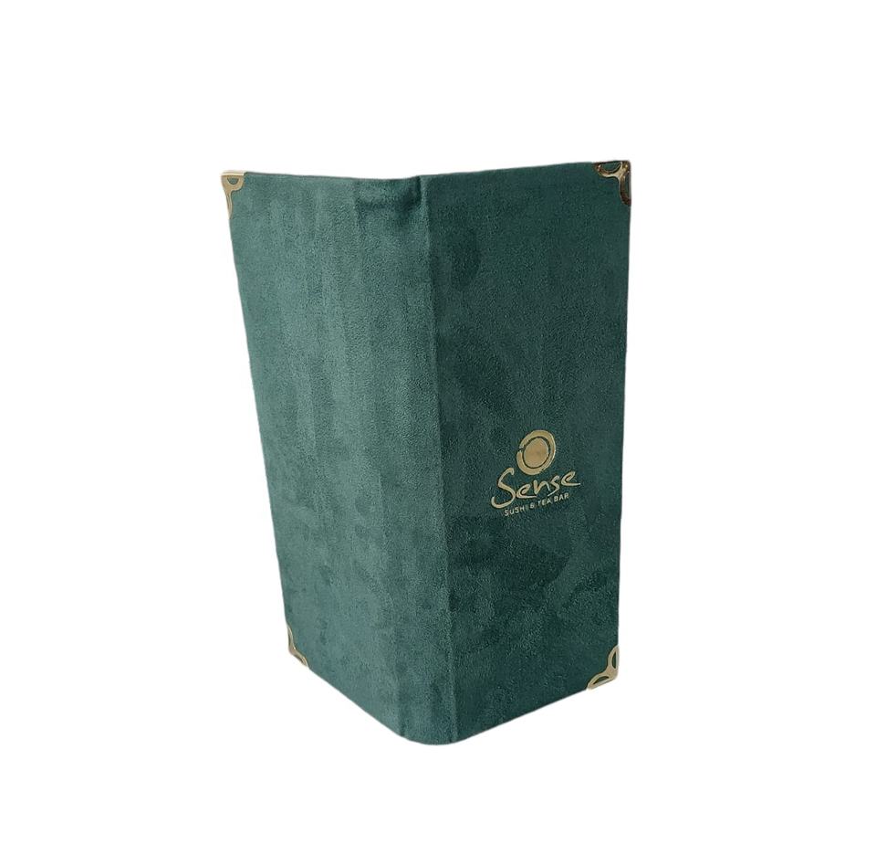 Suede Finish Pu Leather Green Color Hard Board Slim Design Gold Embossed Menu Folder Customized Luxury Design Smooth Material