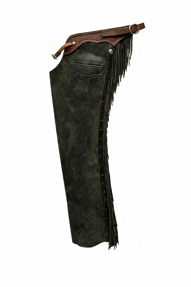 Chaps en daim à franges avec boucle et bouton, coupe ajustée, haute performance pour la compétition, protection des jambes pour l'équitation western et le cowboy