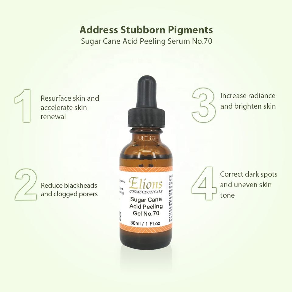 Nom du produit:Gel peeling éclaircissant pour la peau et le corps à l'acide de canne à sucre 70%