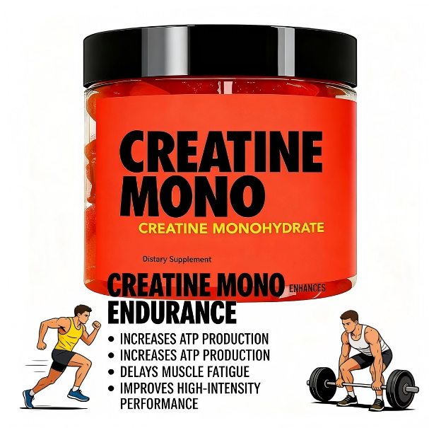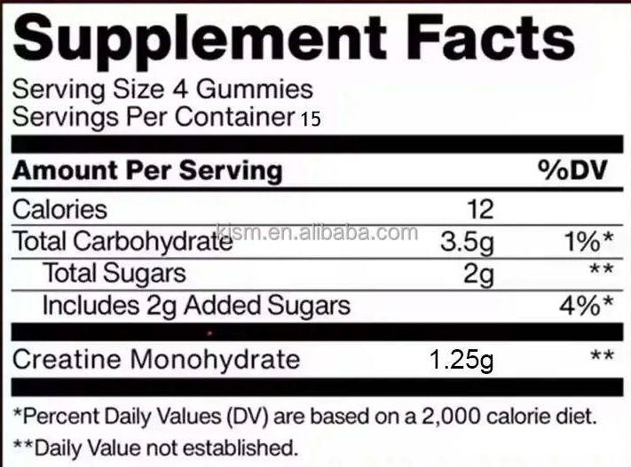 Gummies de créatine sans sucre 5000mg – Complément pré-entraînement à la créatine monohydrate pour booster l'énergie et la croissance musculaire – 2 gummies par dose – Santé