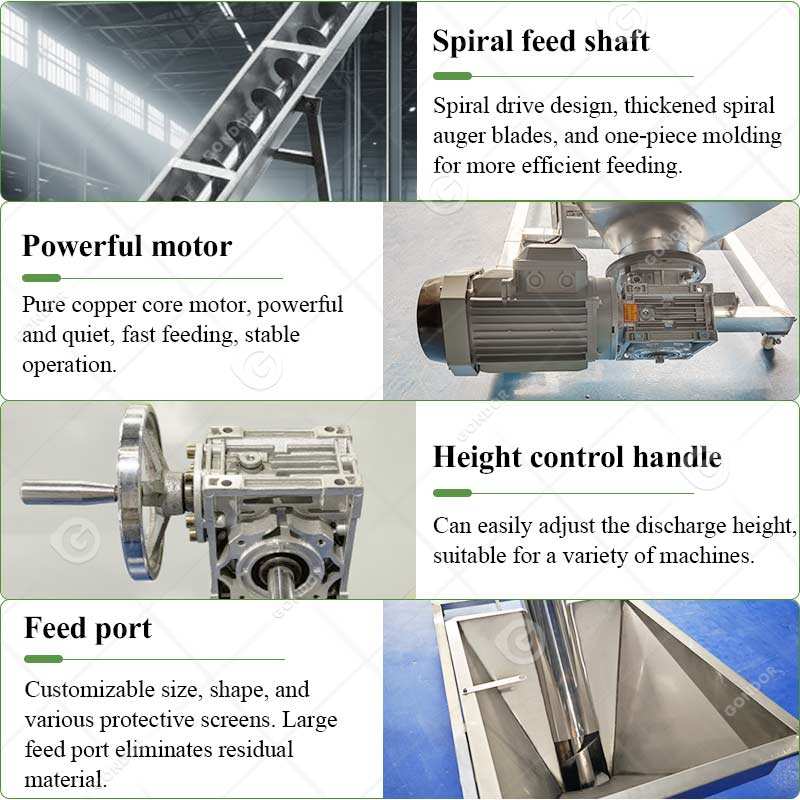 Convoyeur à vis tubulaire incliné en acier inoxydable 304 pour poudre sèche, type Hopper Auger