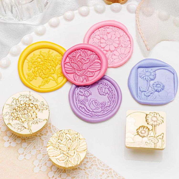 Ensemble de tampons à cire Suidis, motif floral en caoutchouc, pour décoration
