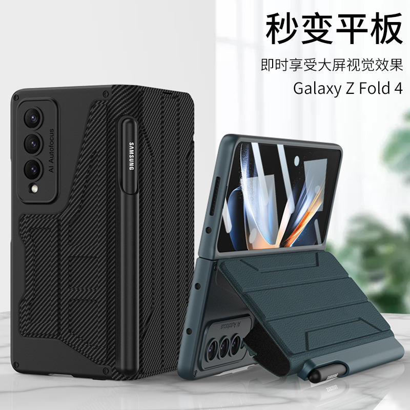Convient pour l'étui de téléphone à écran pliable Zfold4, housse de protection Fold4, porte-stylo, anti-goutte, main en cuir uni
