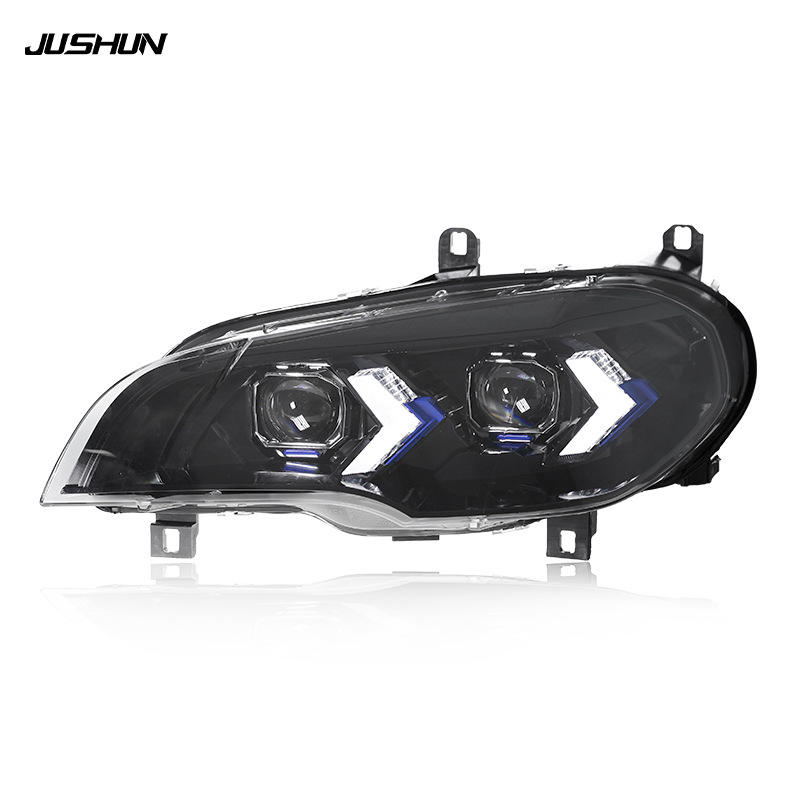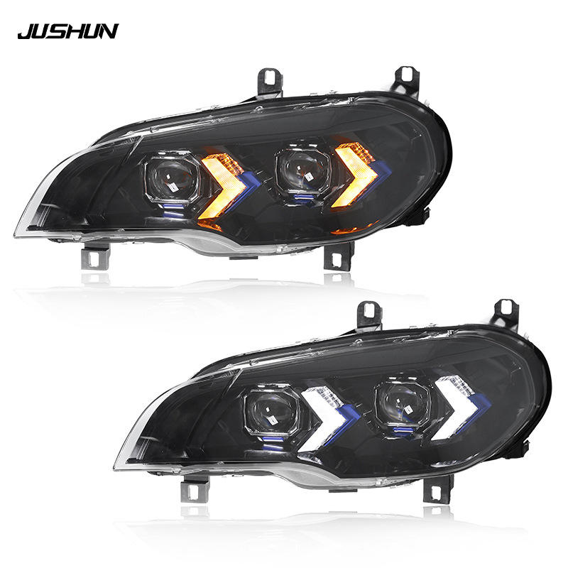 Adapté aux phares de BMW X5 E70 (2007-2013), feux de jour LED bicolores modifiés en forme de flèche avec clignotants.