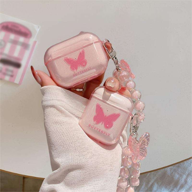 Nom du produit:Étui pour écouteurs transparent à paillettes en TPU, protection intégrale anti-choc avec motif papillon.