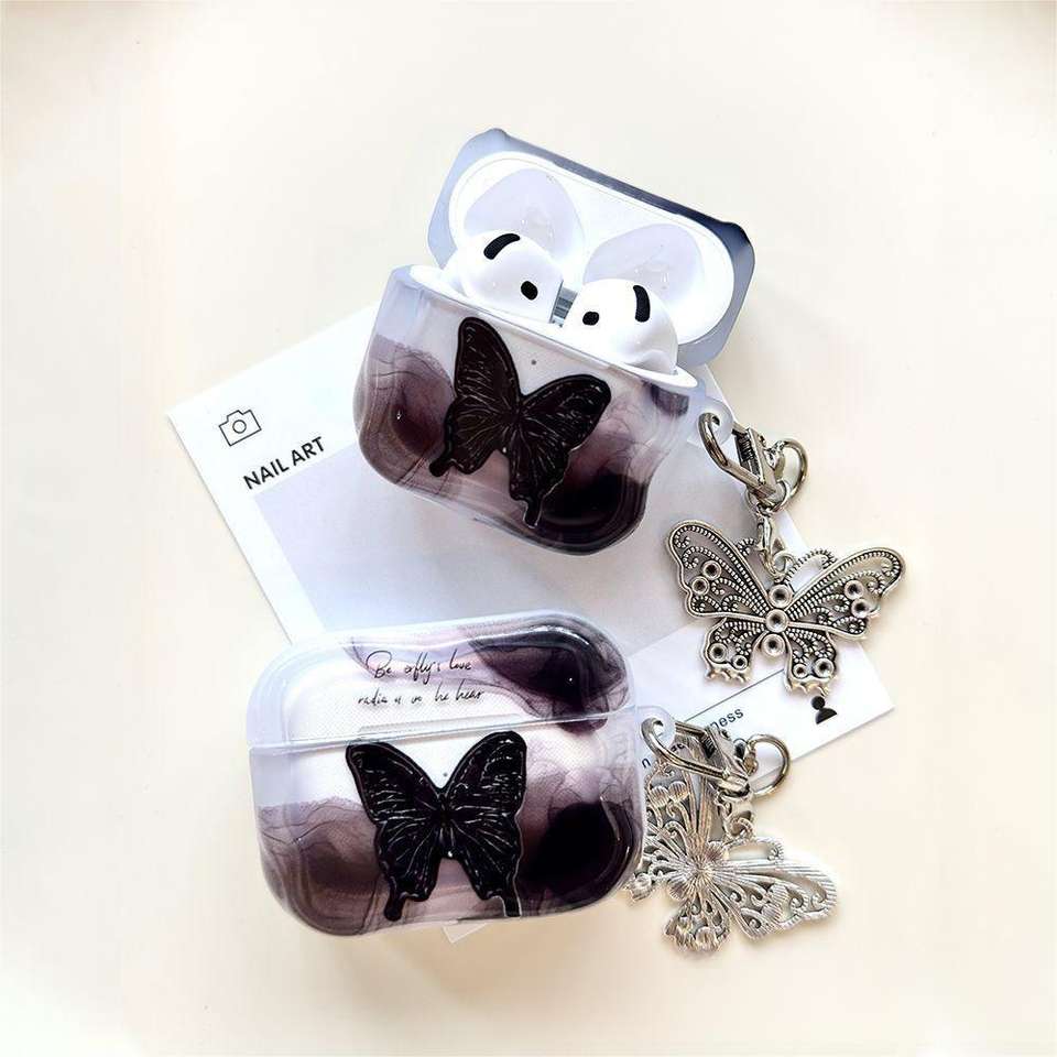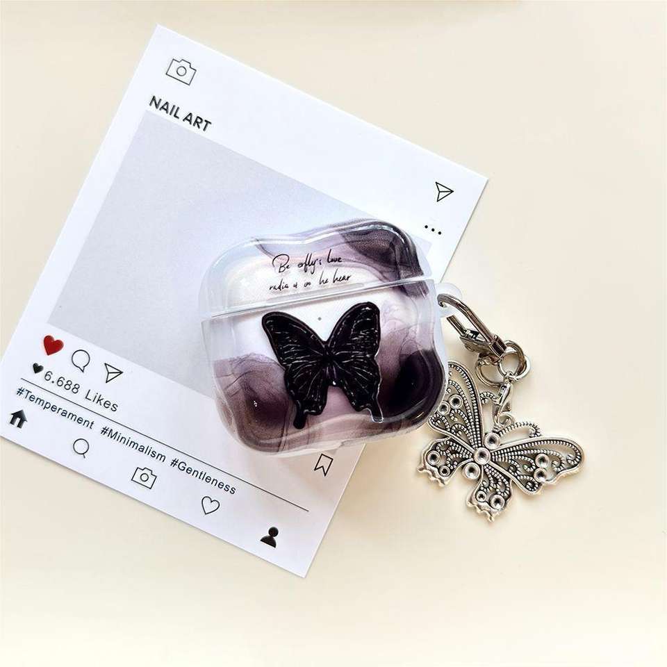 Nom du produit:Étui pour écouteurs antichoc papillon noir mignon en TPU