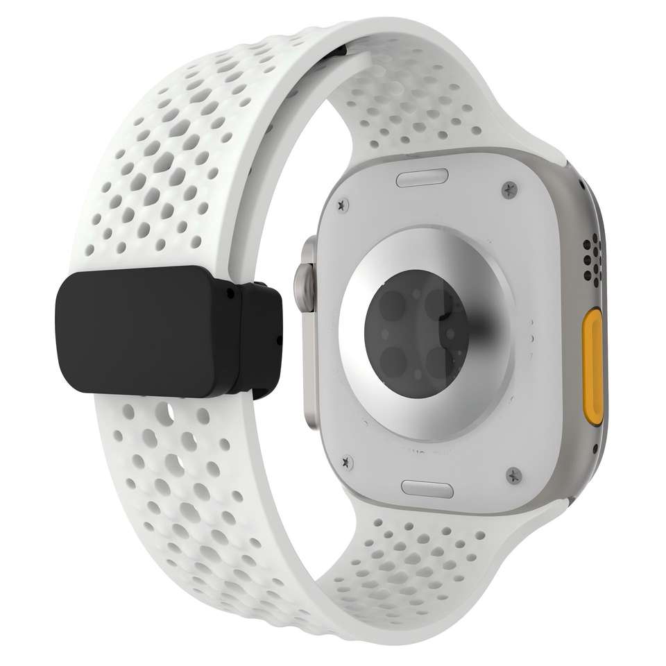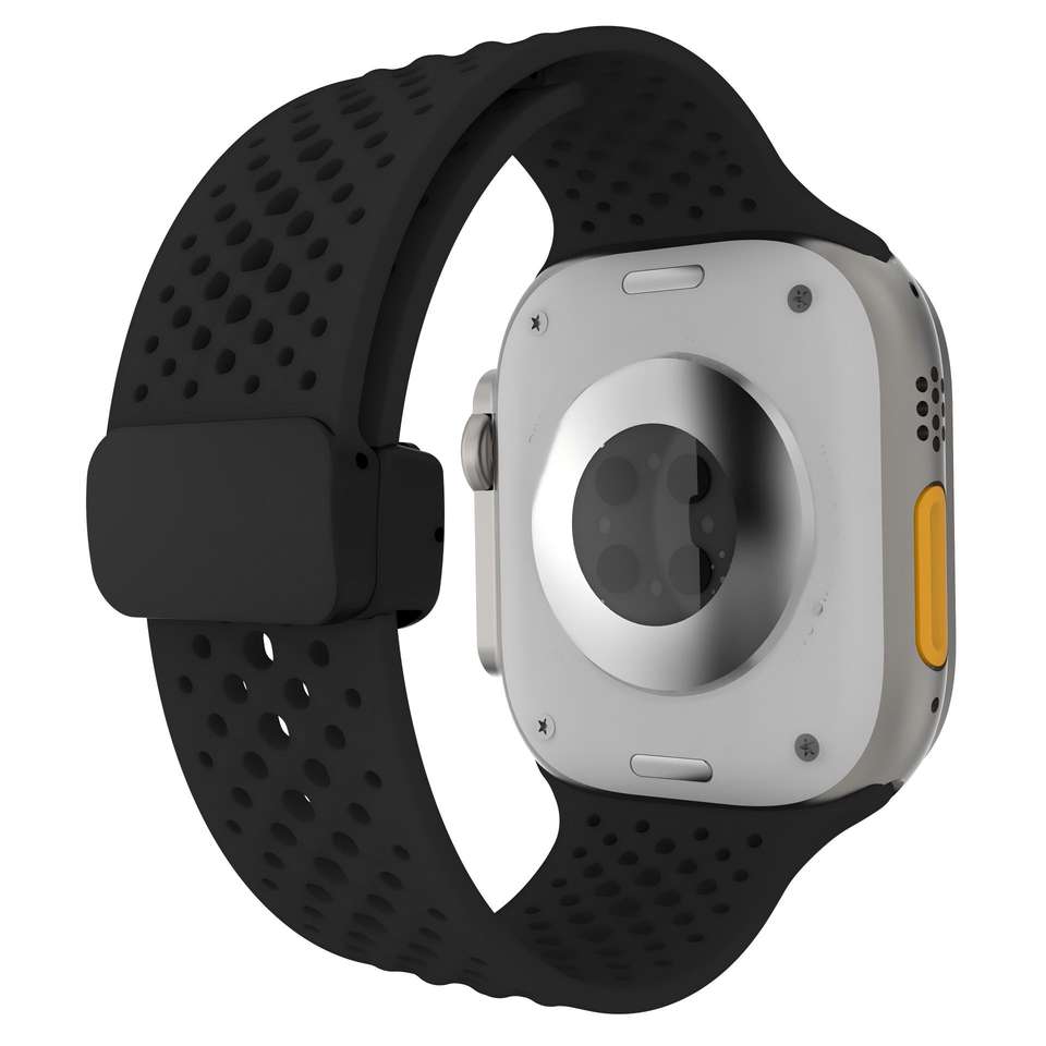 Nom du produit:Bracelet de montre en silicone respirant avec boucle magnétique, compatible Apple.