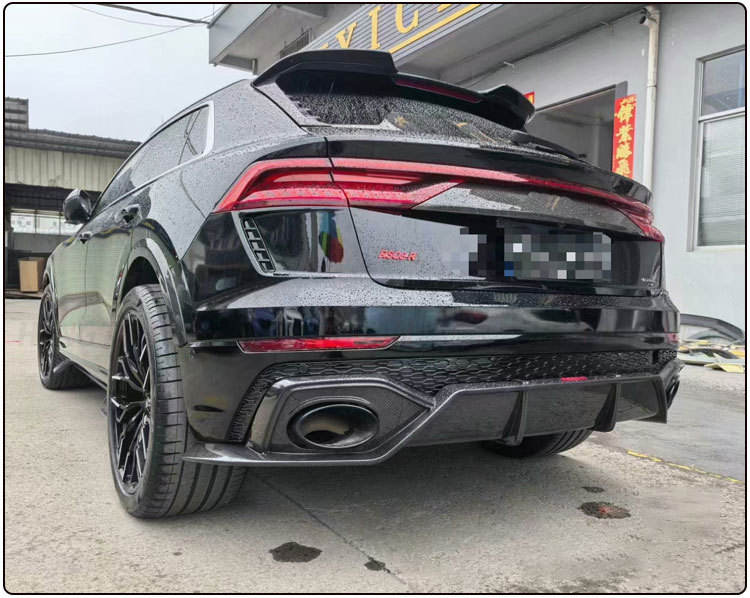 Kit carrosserie ABT en fibre de carbone modifié pour Audi Q8 RS8, comprenant une lèvre avant, une lèvre arrière, des passages de roue et des déflecteurs d'air.