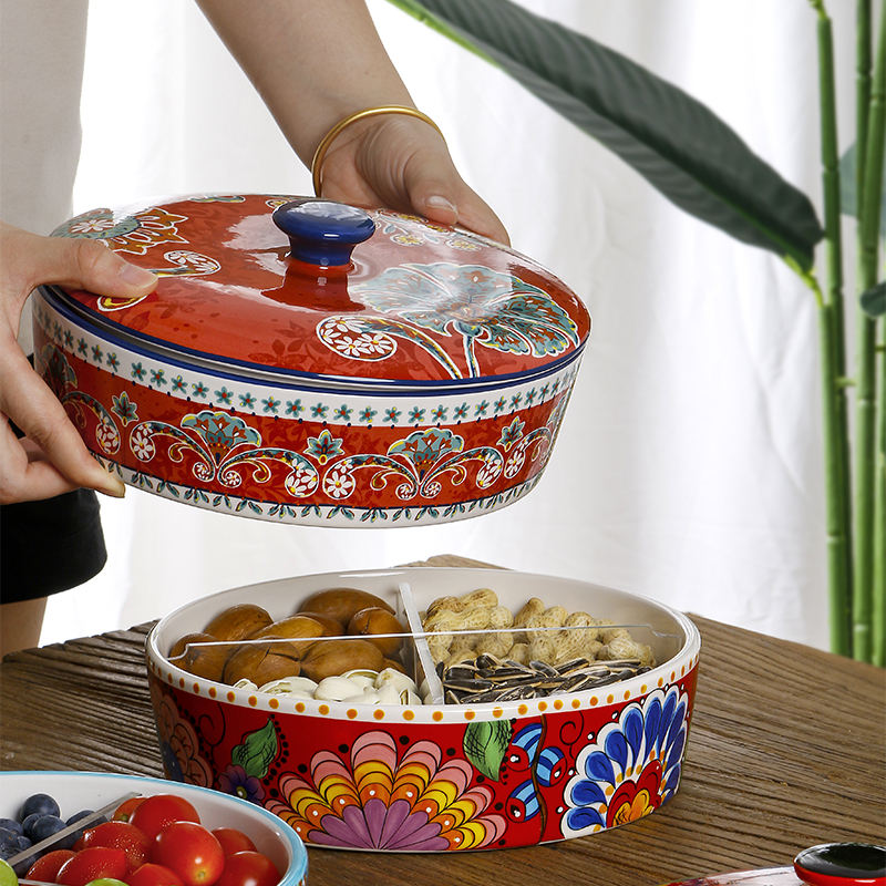 Convient au bol à couvercle multi-compartiments en céramique exotique pour les réunions de famille pour contenir des fruits, des chocolats et des bonbons
