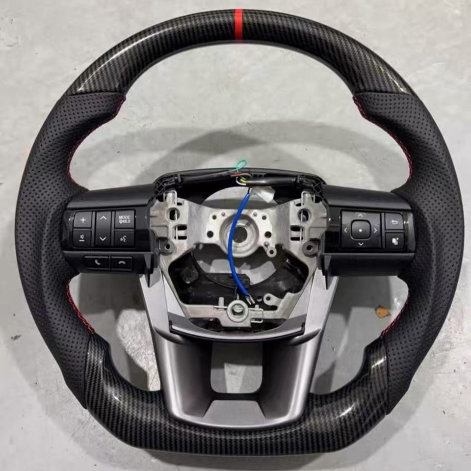 Volant en fibre de carbone sergé personnalisé adapté aux Hilux, Fortuner, Real Innova GR, avec cuir perforé