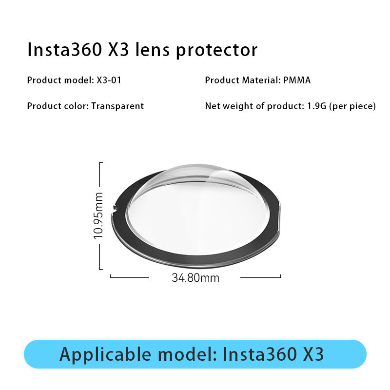Convient à l'objectif de protection de l'appareil photo de sport panoramique Insta360 X3, protection de l'objectif résistant aux rayures, accessoires pour appareil photo de sport