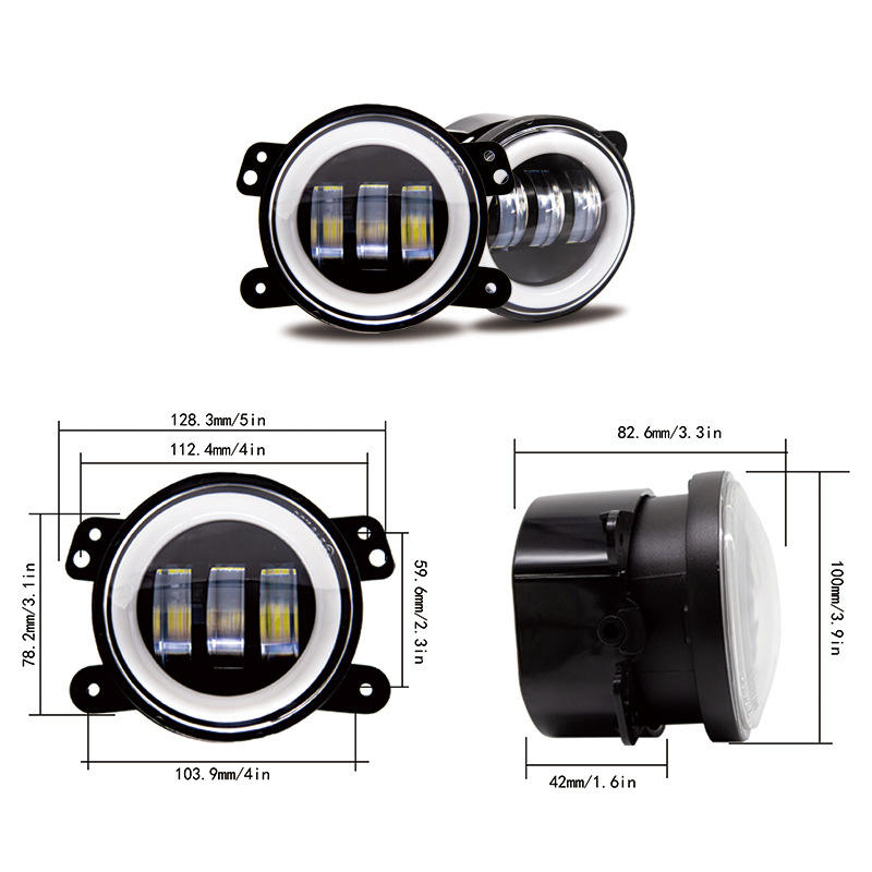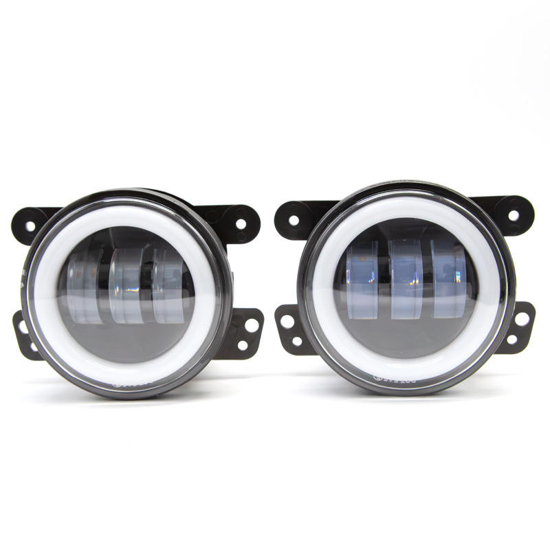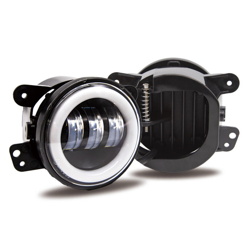 Convient aux phares antibrouillard de voiture Jeep Wrangler, 30w LED 4-inch White and Yellow halo Angel Eye LED Fog Lights for Car Modification