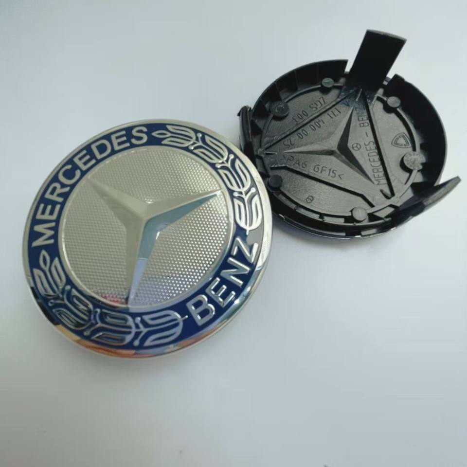 Mercedes-Benz 75MM Wheat Ear Electroplated ABS Hub Center Cap with Black Tire Cap Badge AMG Style