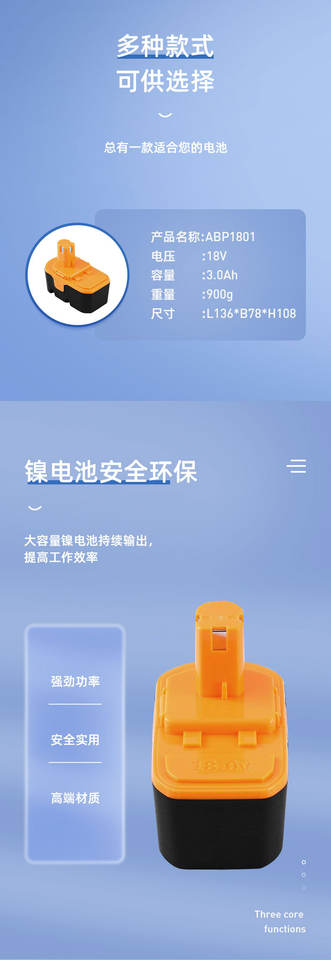 Convient pour Ryobi 18V Perceuse à main Tournevis électrique Outil Nickel-cadmium Nickel-métal Hydrure Batterie ABP1801