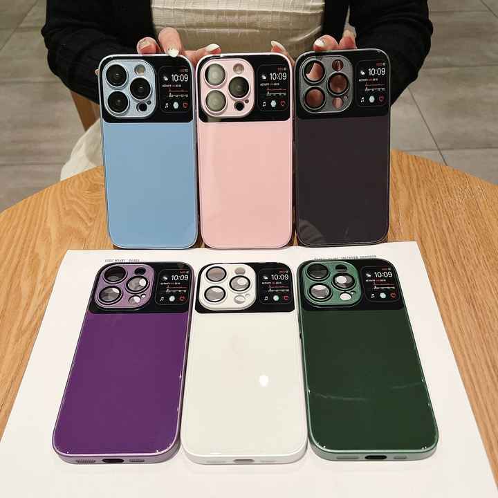 Convient pour iPhone 14 pro max étui de téléphone mobile grande fenêtre 13 étui de protection intégré en verre liquide 11