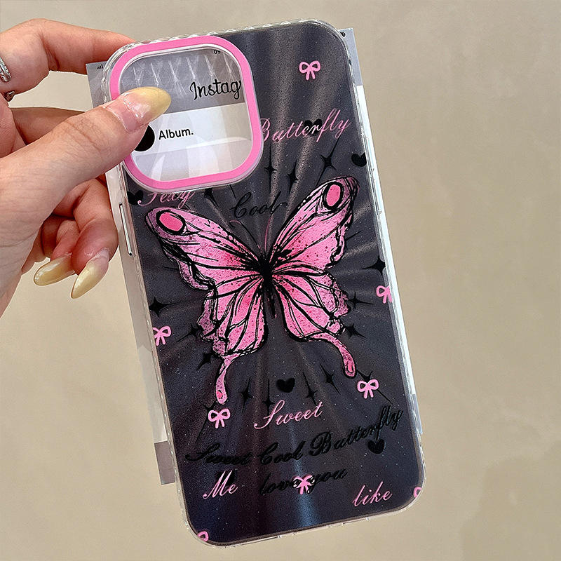 Nom du produit:Coque de téléphone antichoc avec dragonne papillon rose PC Aurora