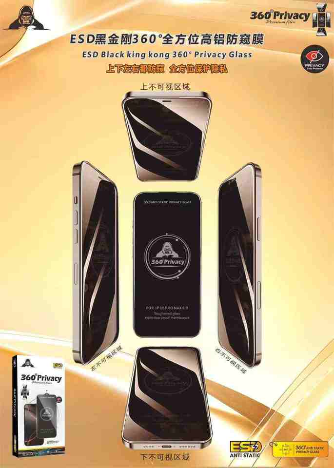 Product name:Tempered Glass ESD Black king kong 360° Privacy