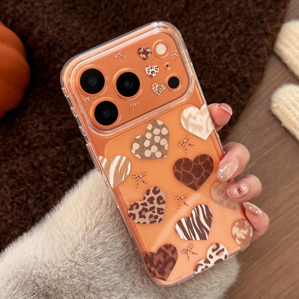 Coque de téléphone transparente en TPU, motif cœur rétro léopard, protection intégrale antichoc