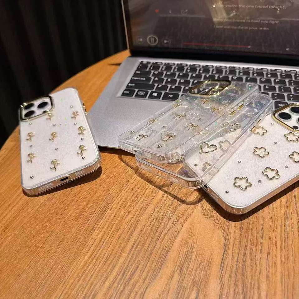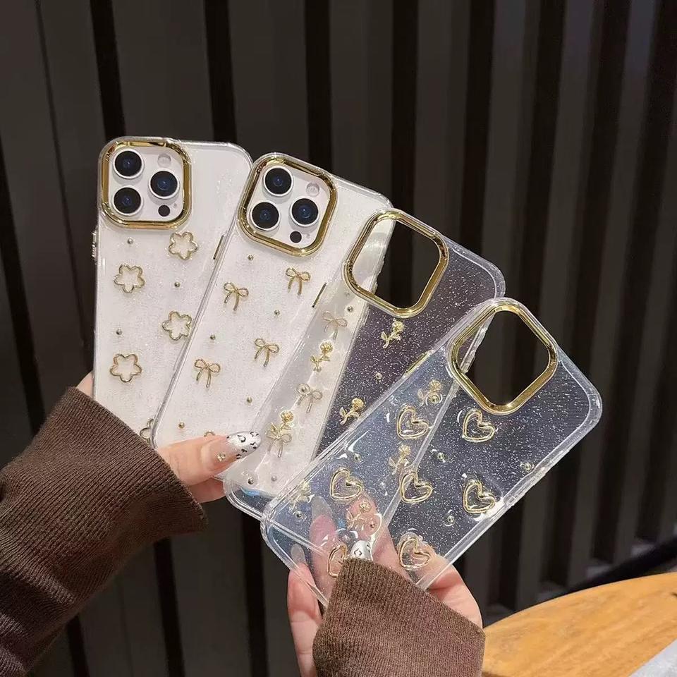 Product name:Epoxy Glitter Minimalist Gold Bow Heart Soft Shockproof Phone Case