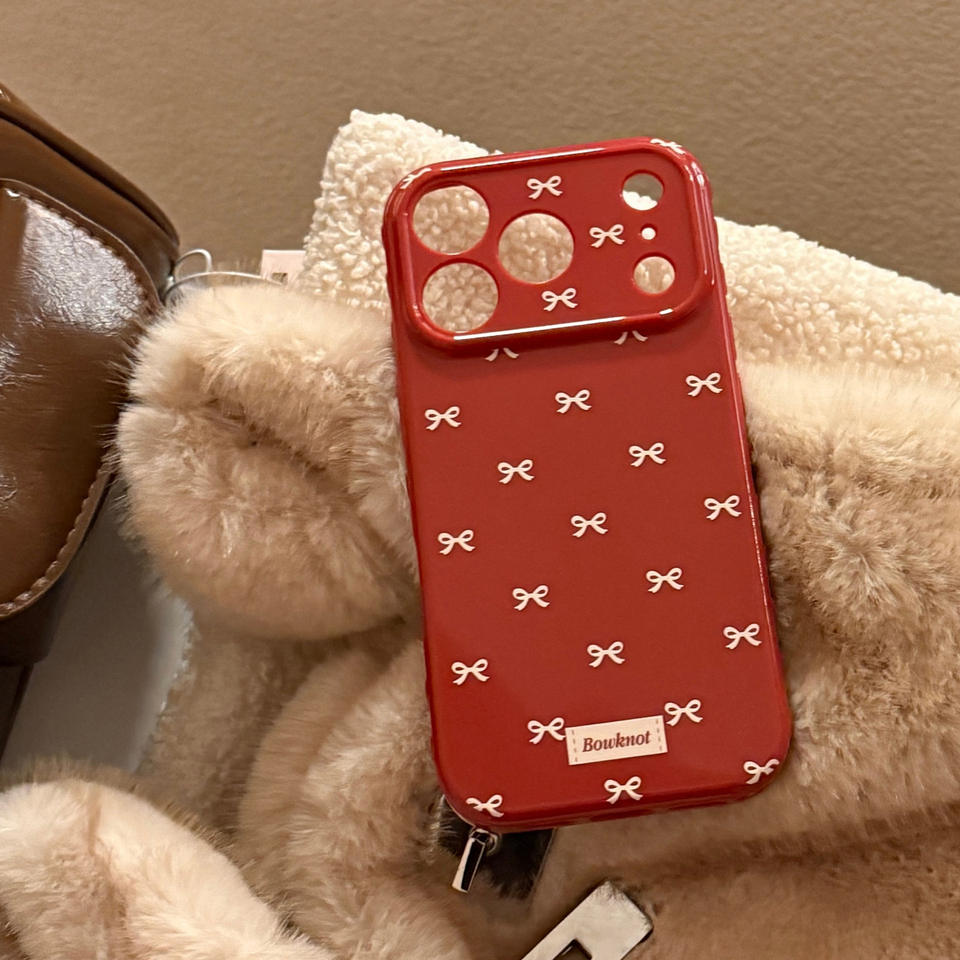 TPU Full-Cover Shockproof Phone Case with Red New Year Bow Pattern