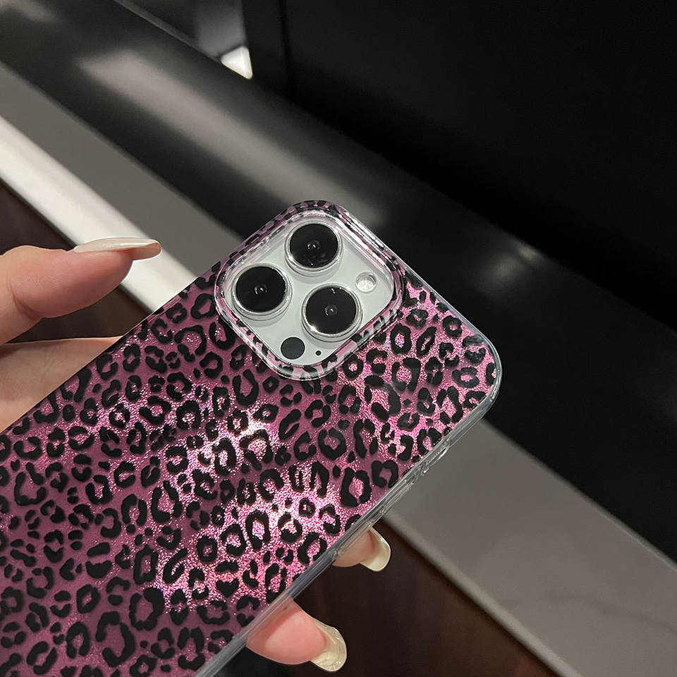 Nom du produit:Coque de téléphone antichoc intégrale en polycarbonate avec motif léopard aurore boréale violet et finition métallisée.