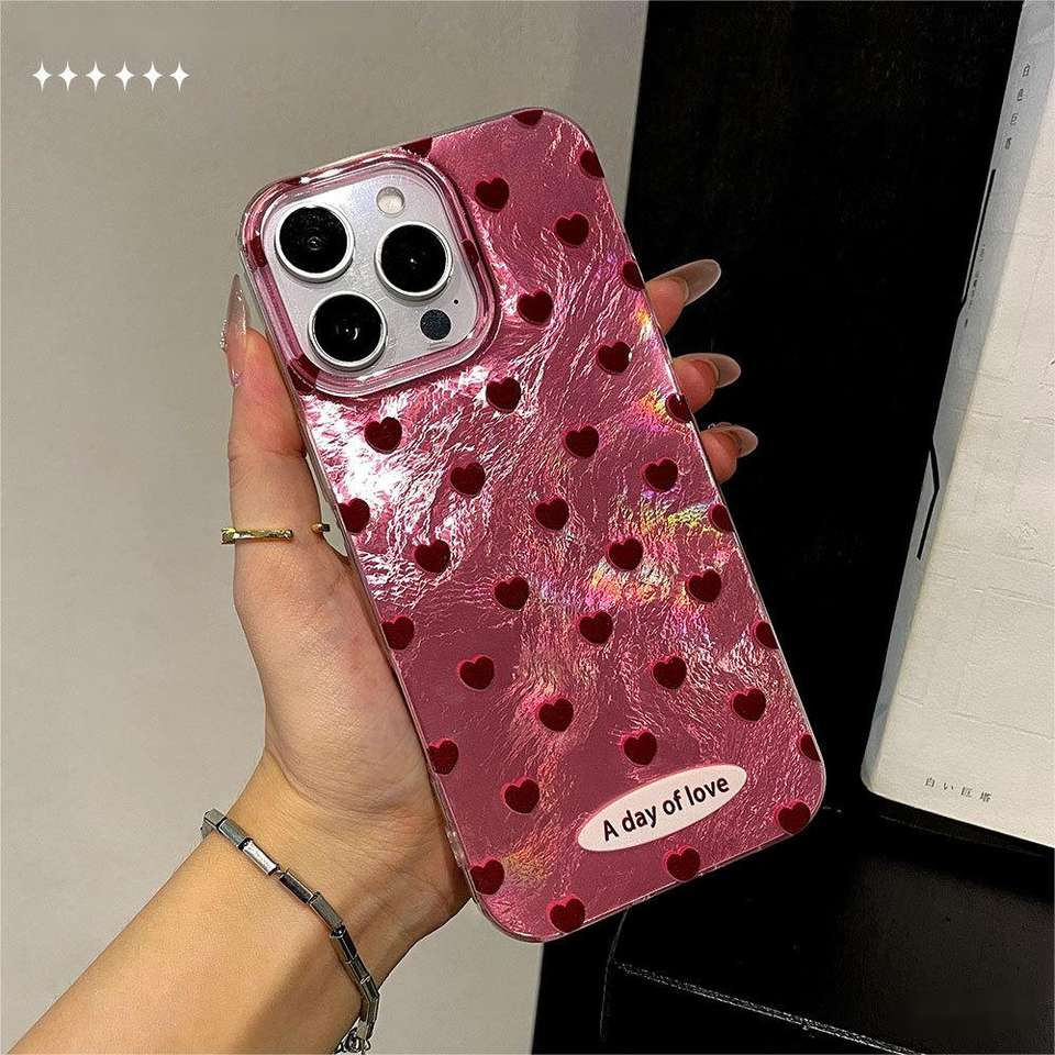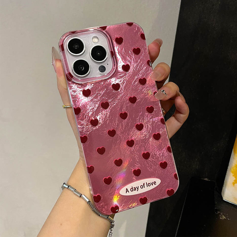 Nom du produit:Coque de téléphone en TPU argenté à paillettes avec cœurs plein écran, antichoc