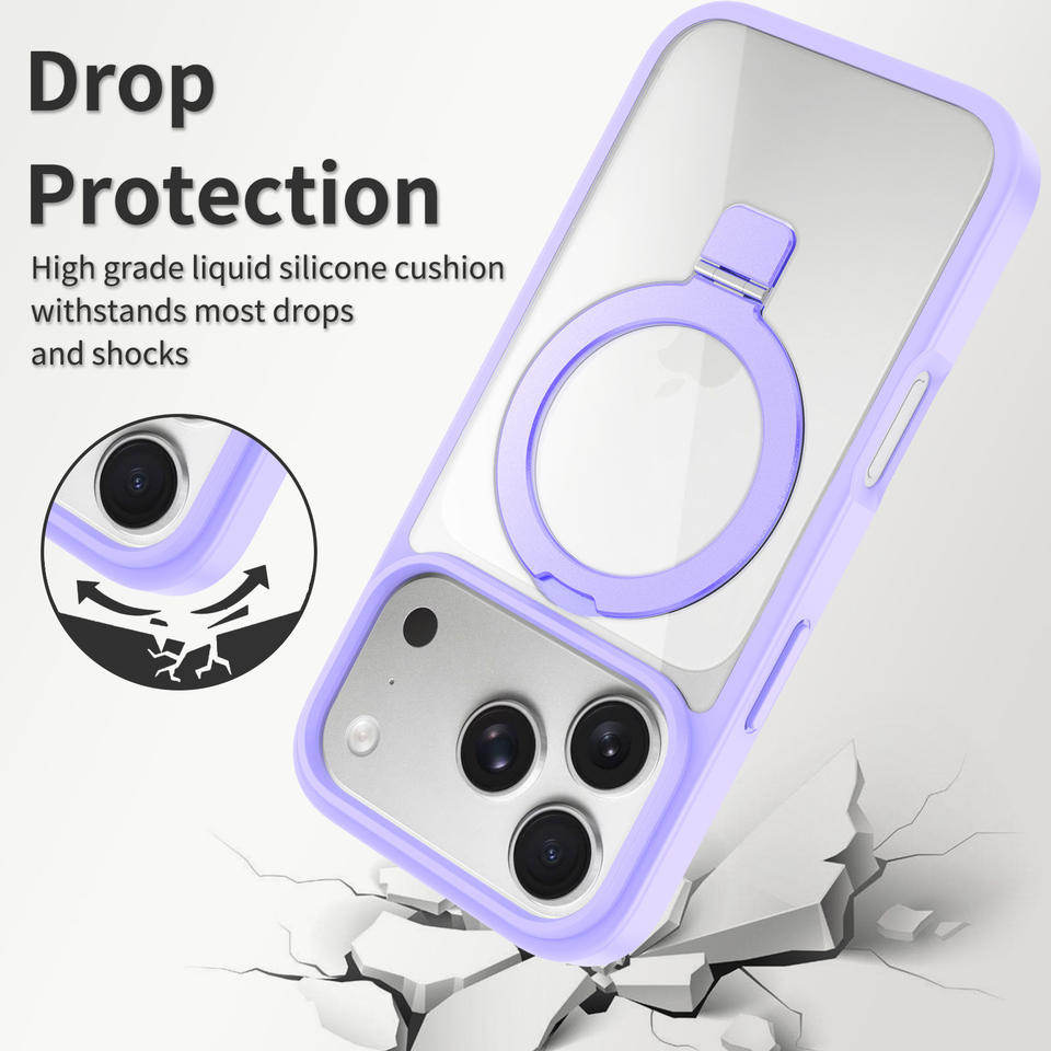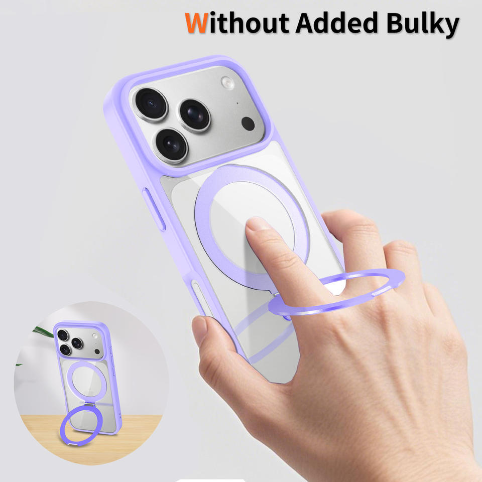Nom du produit:Coque de téléphone transparente en TPU acrylique avec support, effet peau, magnétique et antichoc