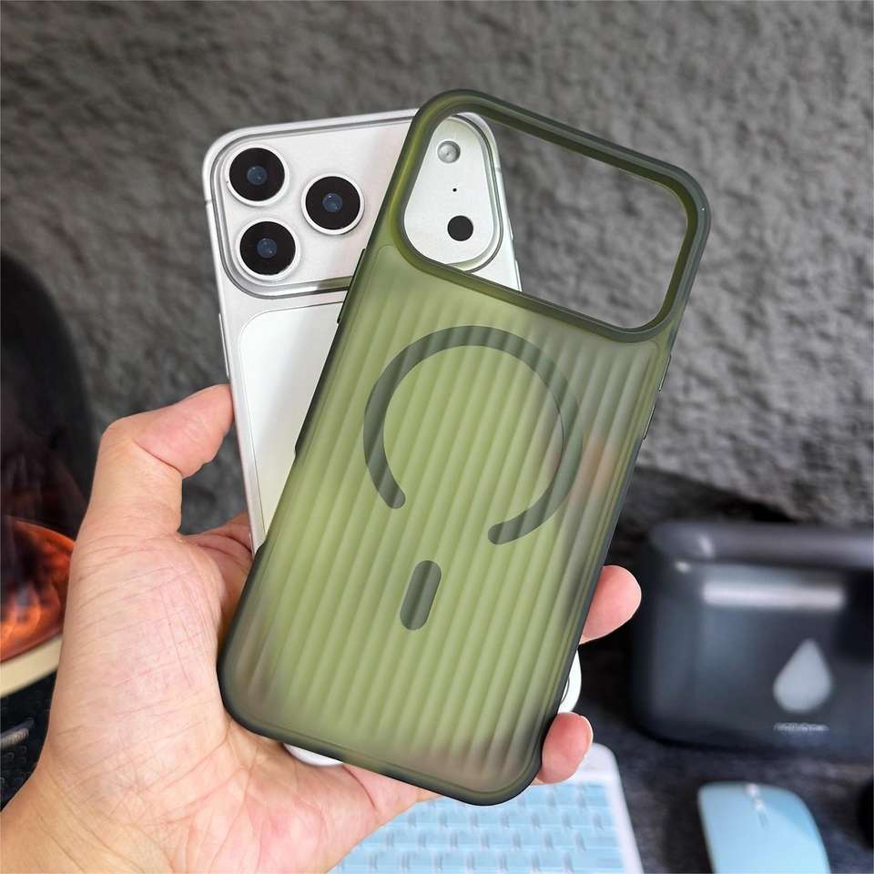 Coque de téléphone pour iPhone 17, haut de gamme, vert aiguille de pin, ondulée, mate, magnétique, intégrale, antichoc