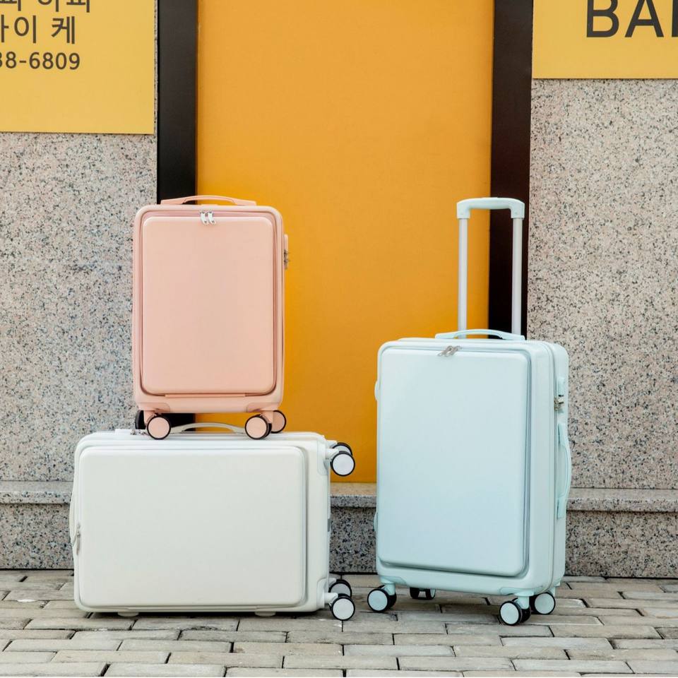 Valise avec ouverture frontale 26 pouces, roulettes universelles, bagage de voyage unisexe pour les voyages de loisirs