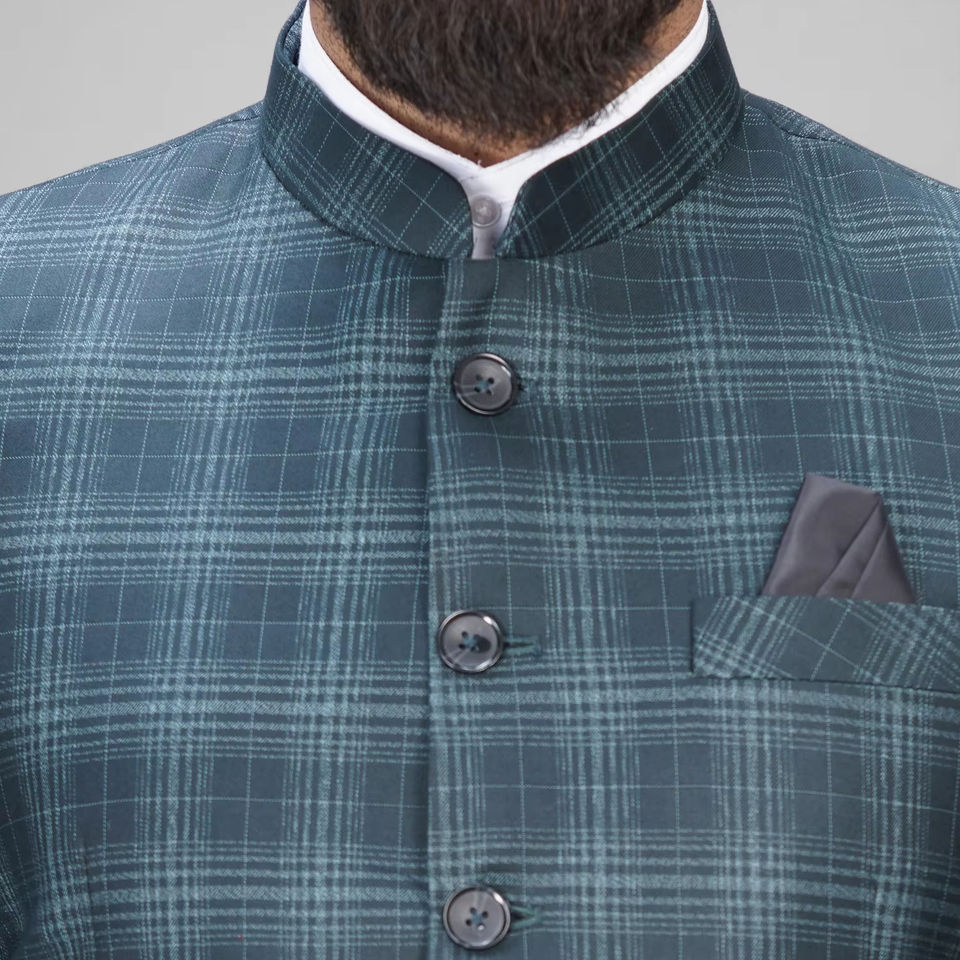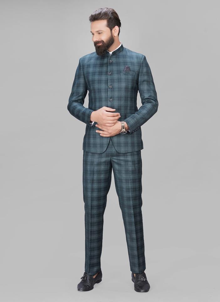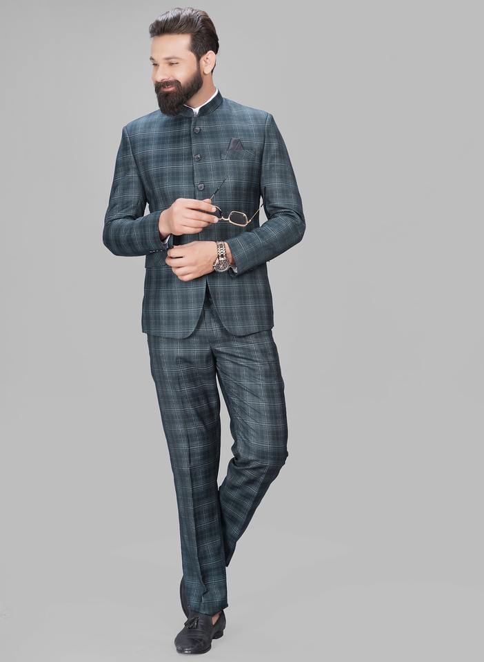 Costume 2 pièces en polyester pour hommes, col bandeau basique, coupe régulière, anti-rides, respirant, style jodhpuri formel
