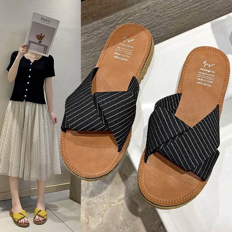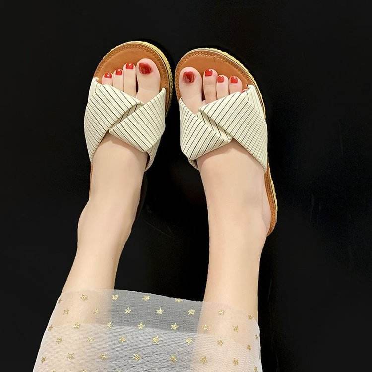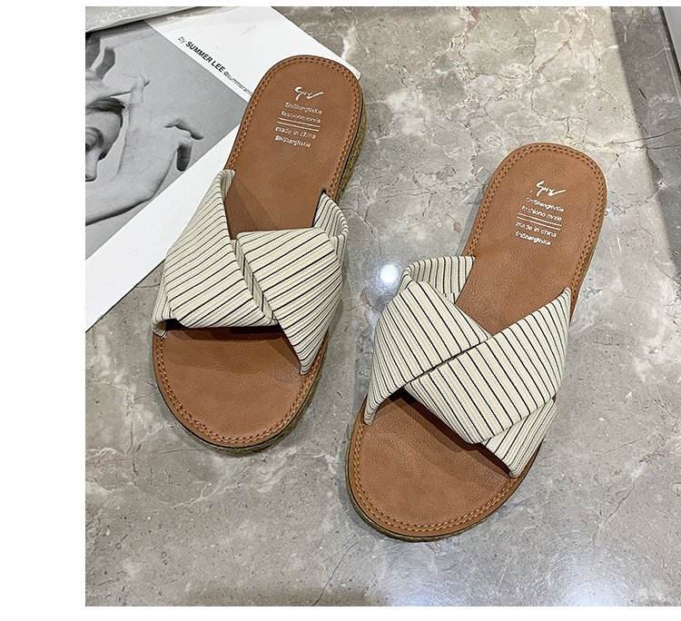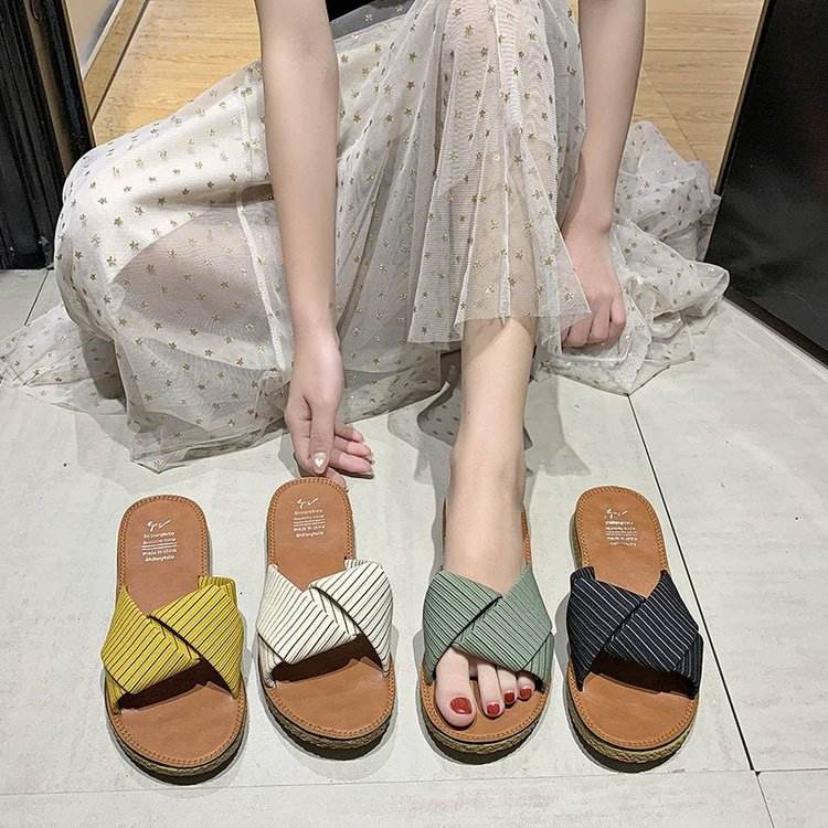 Summer 2024 Ladies Shoes Flat Casual Sandal Outdoor Slides One Tong Ladies Flat Slippers Women Flat and Sandal