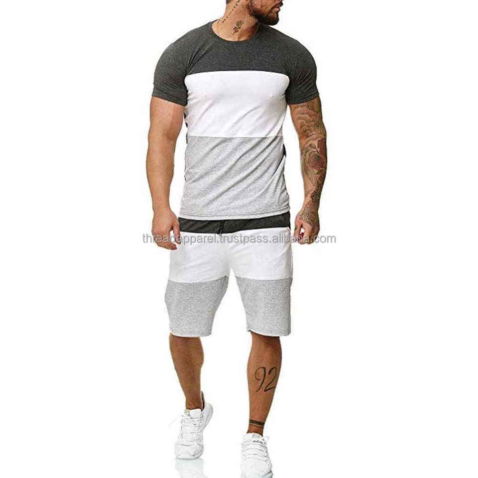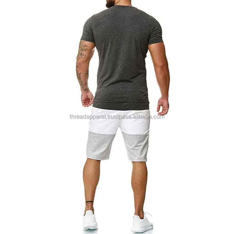 Ensemble de t-shirts et de shorts d'été pour hommes respirants Vente en gros d'été Ensemble de shorts à manches 100% coton pour hommes