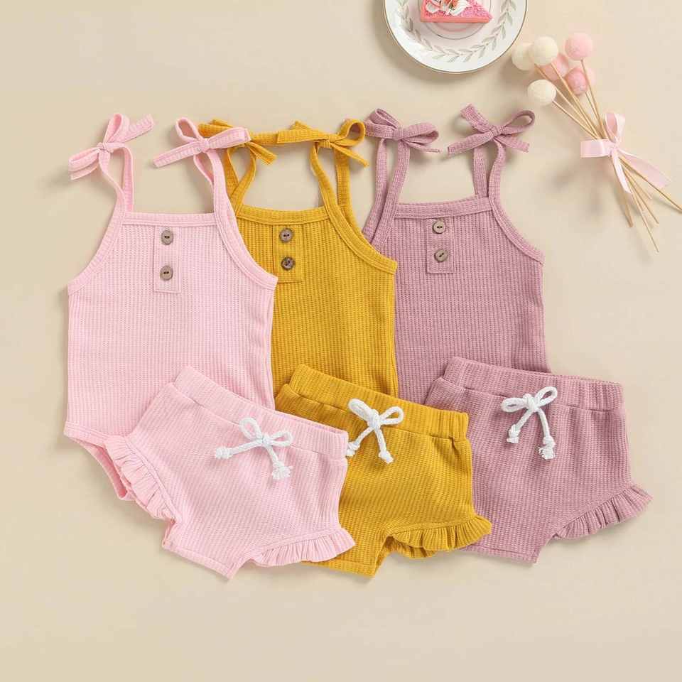 Ensemble côtelé en coton pour bébé, 100 % coton, barboteuse à manches courtes pour tout-petit, ensembles de vêtements d'été pour bébé fille