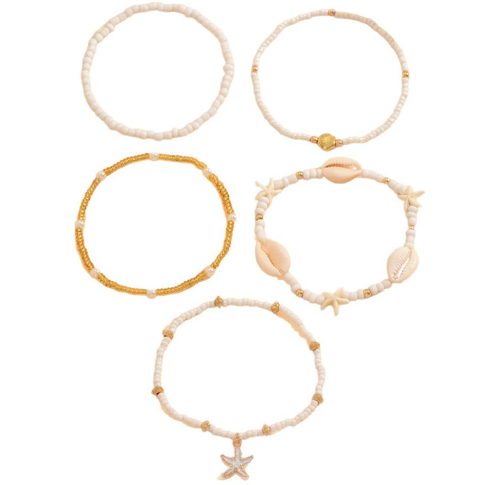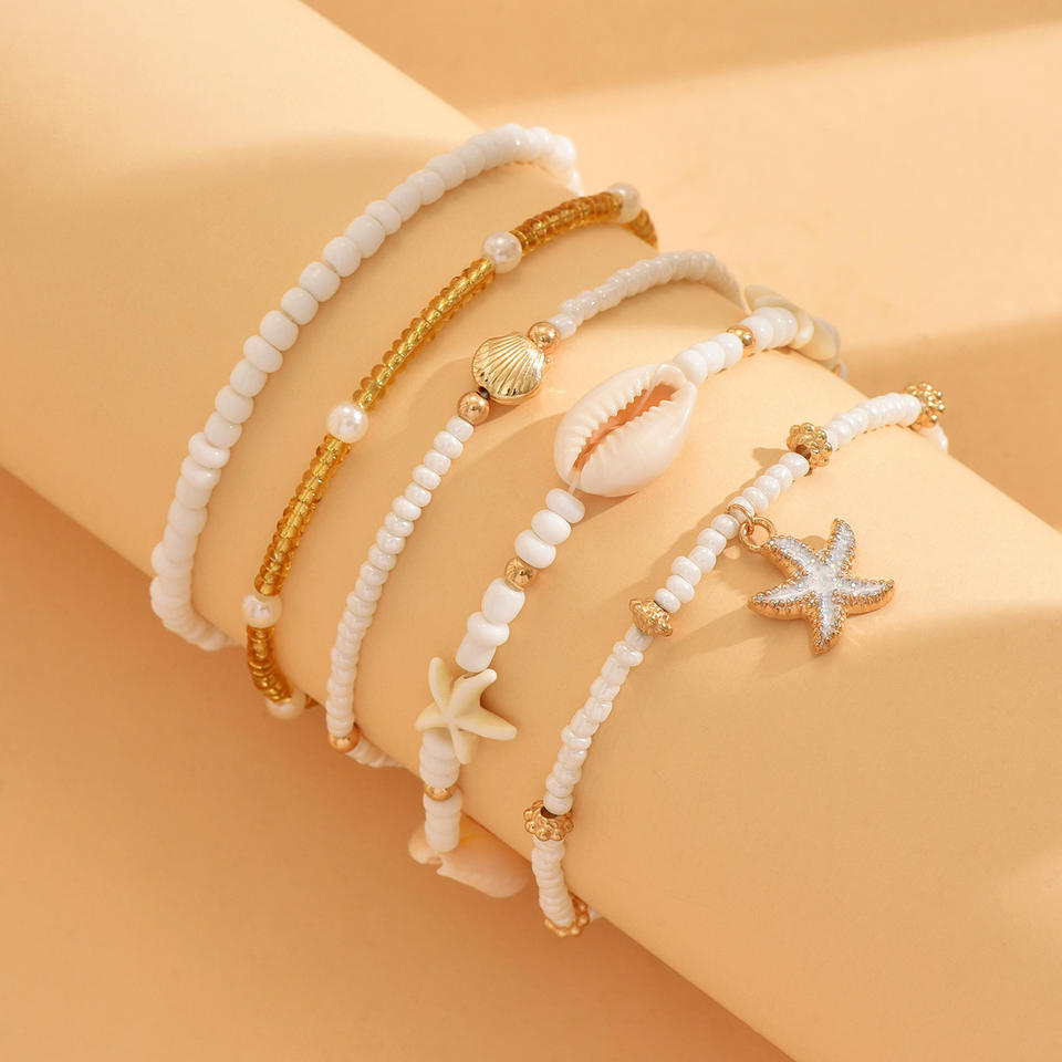 Pied de plage d'été pour Amazon Cross-Border Nouveau produit Starfish Shell Riz Bead Beaded Anklet Principalement Made Simple Multi-Layer