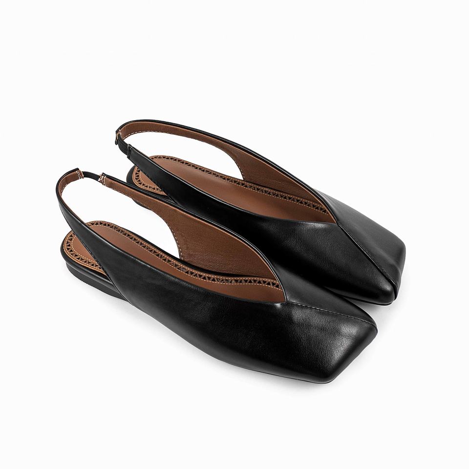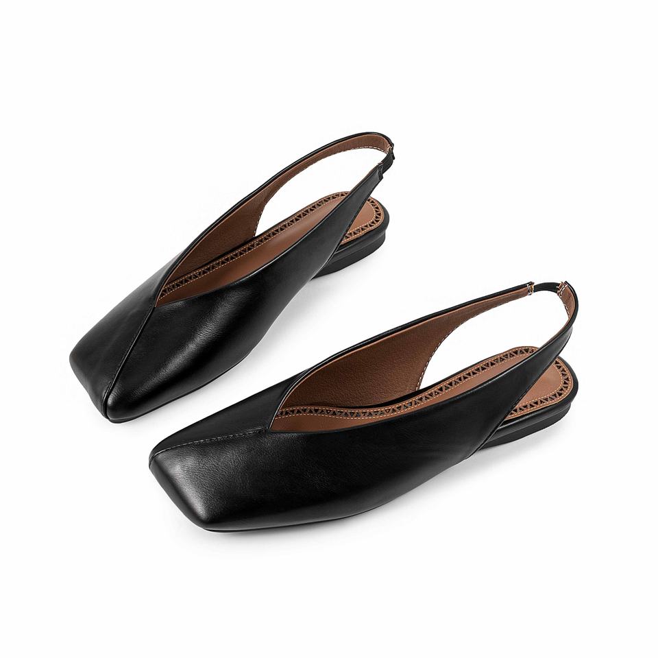 Summer Black Genuine Leather Comfort Flat Heels Square Toe Women Slingbacks Sandals