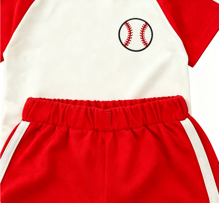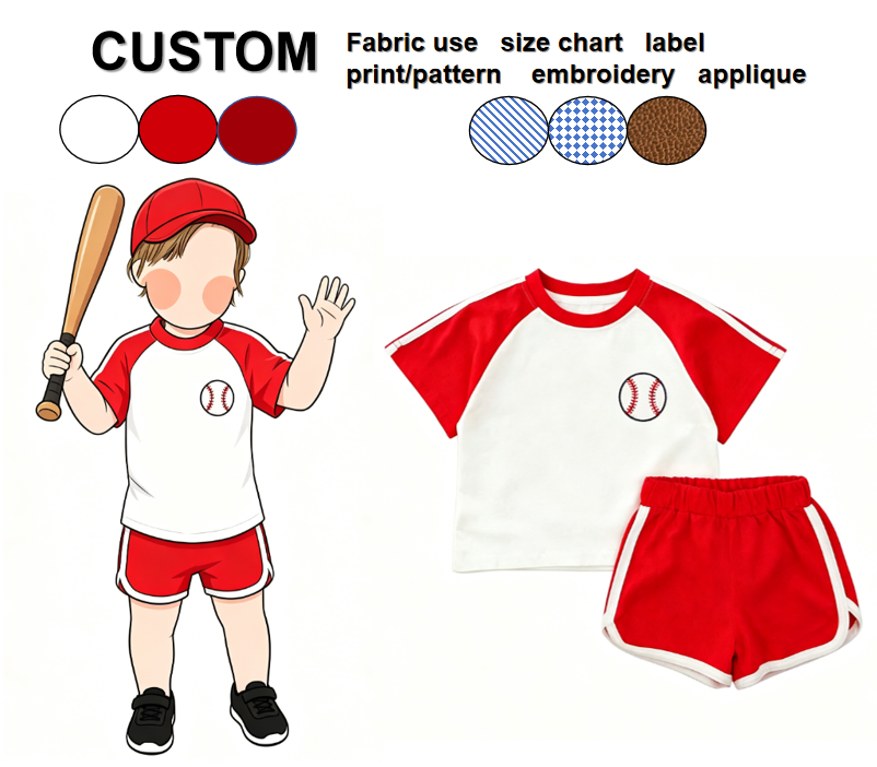 Ensemble de vêtements d'été pour garçons, t-shirt raglan avec imprimé, short élastique, ensemble deux pièces, vêtements en coton personnalisés pour enfants