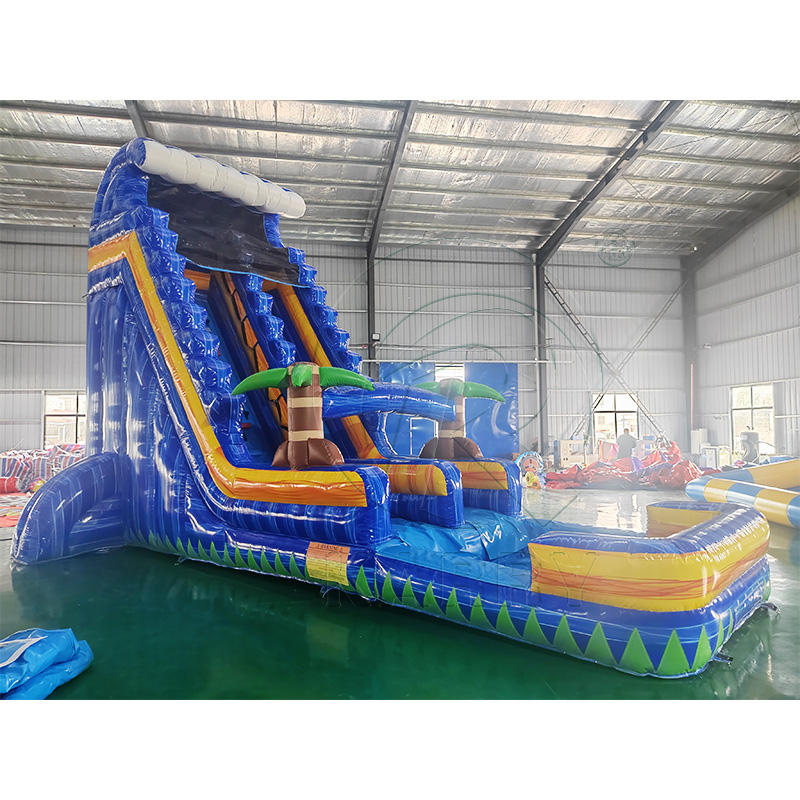 Parc aquatique gonflable géant avec toboggans aquatiques gonflables irisés en PVC, amusant et palpitant pour le carnaval d'été, avec piscine.